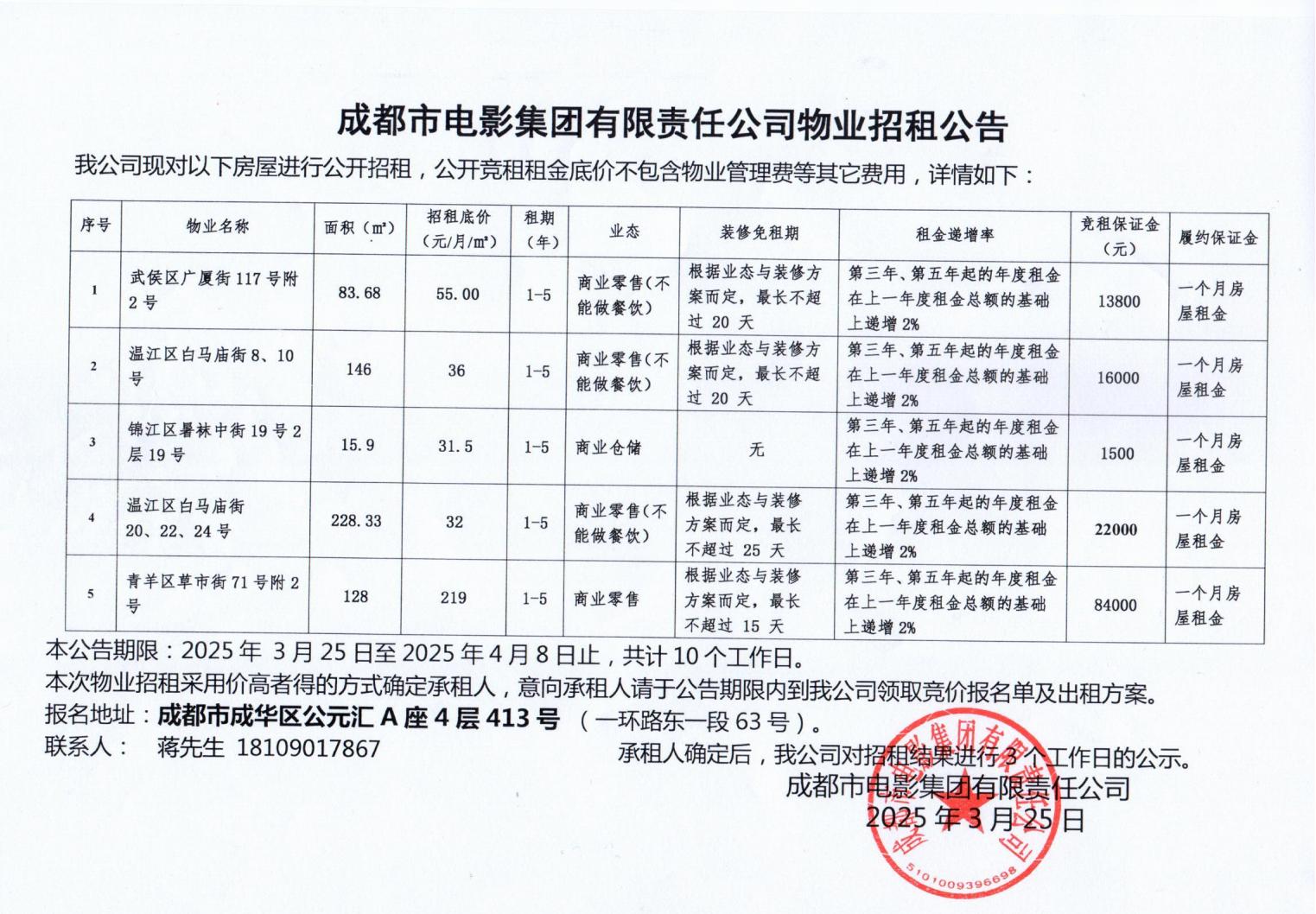 成都市電影集團(tuán)有限責(zé)任公司物業(yè)招租公告